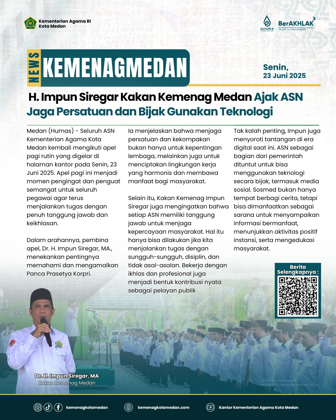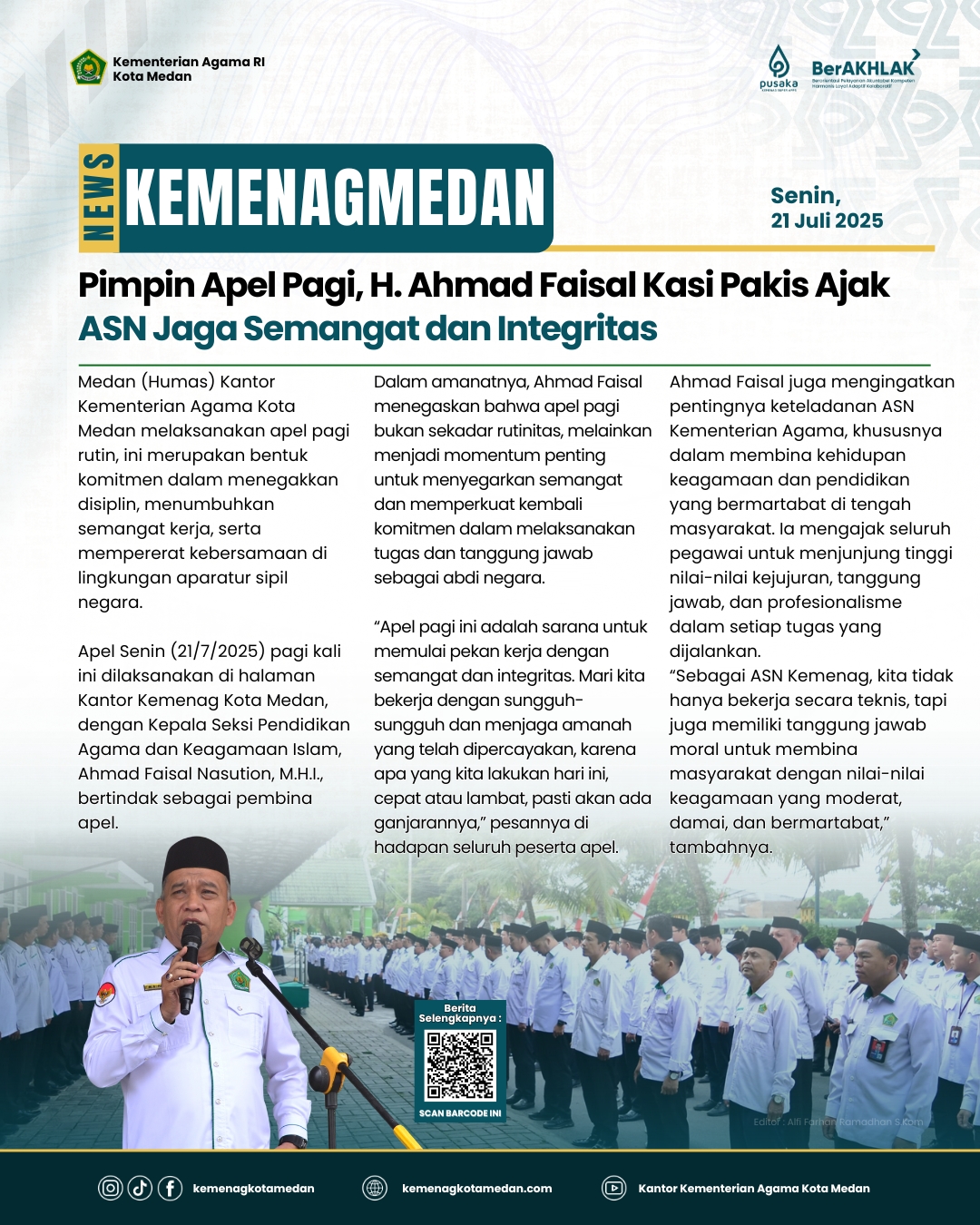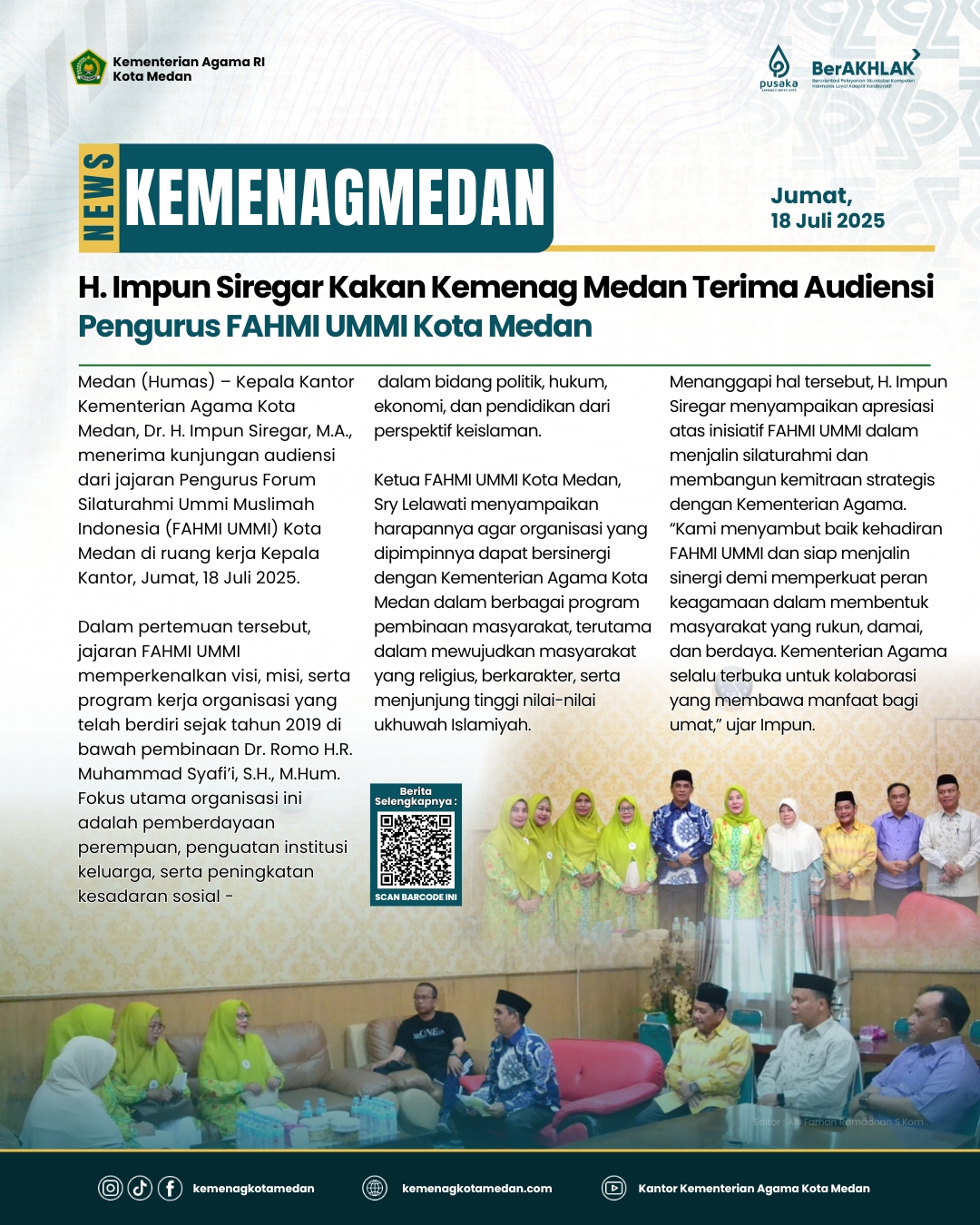 Medan (Humas) — Penyuluh Agama Islam Kantor Urusan Agama (KUA) Kecamatan Medan Area, Ikhwan, S.H.I.,...