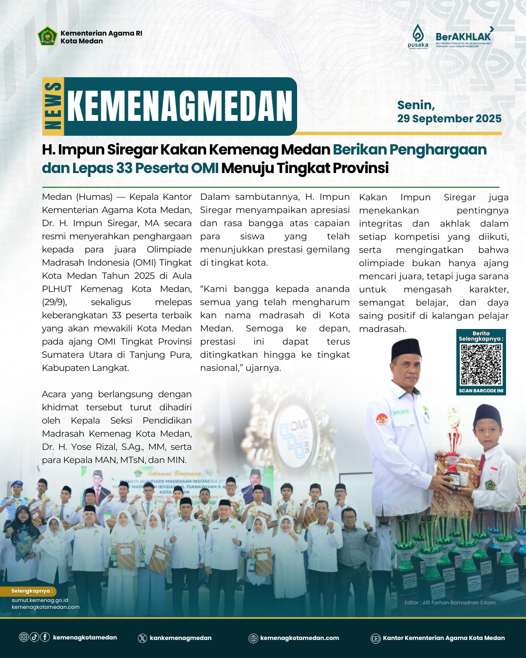 Medan (Humas) – Kepala Madrasah Aliyah Persiapan Negeri (MAPN) 4 Medan, Dr. Syarifuddin, S.Pd.I, MA,...