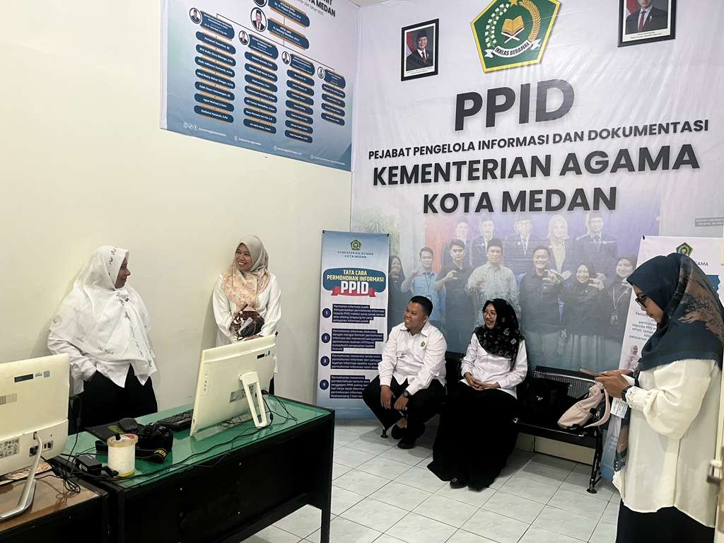Sementara itu, Ibdatul Akmalia, S.Pd., selaku Koordinator Umum dan Humas Kemenag Kota Medan, menjelaskan pentingnya membangun budaya pelayanan informasi yang cepat, jelas, dan mudah diakses masyarakat. “Kami berusaha agar masyarakat tidak kesulitan saat membutuhkan informasi. Semua proses pelayanan di PPID Kemenag Medan kami jalankan secara terbuka dan mudah diakses, supaya publik merasa dilayani dengan baik,” ujarnya.