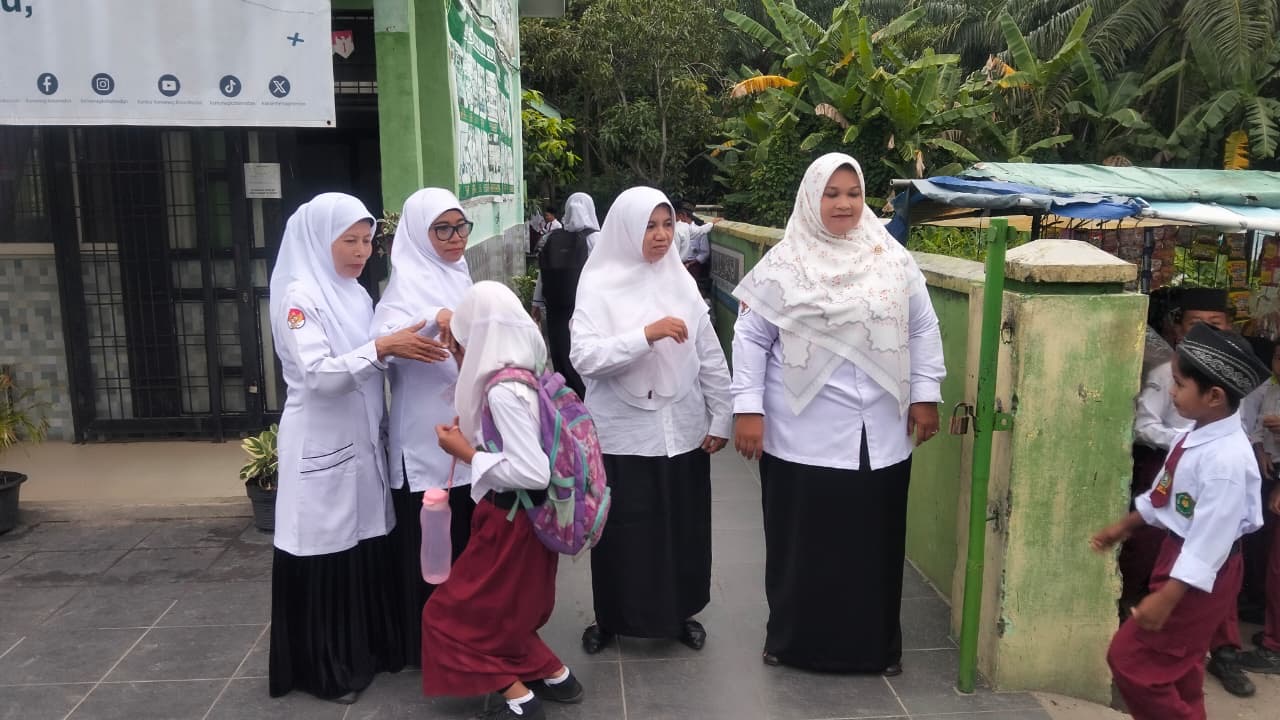 Sejak pukul 06.45 WIB, kepala madrasah bersama para guru berdiri di pintu gerbang untuk menyambut kedatangan murid. Suasana penuh keakraban tampak ketika murid datang satu per satu, disambut dengan salam, senyum, dan jabat tangan. Selain menanamkan sopan santun, kegiatan ini juga mengajarkan kedisiplinan dan membangun semangat belajar sejak pagi hari.