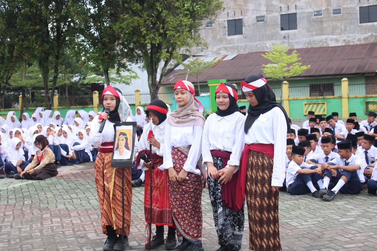 Para siswa tampil memukau mengenakan kostum yang mewakili berbagai tokoh perjuangan nasional, seperti Martha Christina Tiahahu, Cut Nyak Dien, Fatmawati, Pangeran Diponegoro dan pahlawan lainnya.