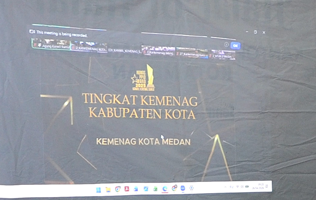 Pengumuman penghargaan tersebut disampaikan dalam Rapat Kerja Kanwil Kemenag Provinsi Sumatera Utara Tahun 2026 yang digelar secara virtual melalui Zoom Meeting pada Selasa (28/4/2026). Capaian ini menjadi bukti komitmen Kemenag Kota Medan dalam mengelola layanan informasi publik secara profesional, transparan, dan akuntabel.
