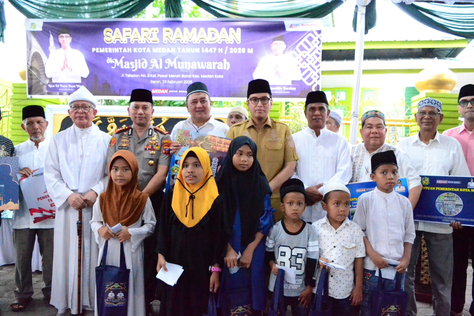 Medan (Humas) – Kepala Kantor Kementerian Agama Kota Medan, Dr. H. Impun Siregar, MA, menghadiri Safari Ramadan perdana Pemerintah Kota Medan yang digelar di Masjid Al-Munawwarah, Jalan Teladan, Kecamatan Medan Kota, Senin (23/2/2026). Kegiatan tersebut dipimpin langsung oleh Wali Kota Medan, Rico Tri Putra Bayu Waas, dan dihadiri unsur Forkopimda serta ratusan jamaah.