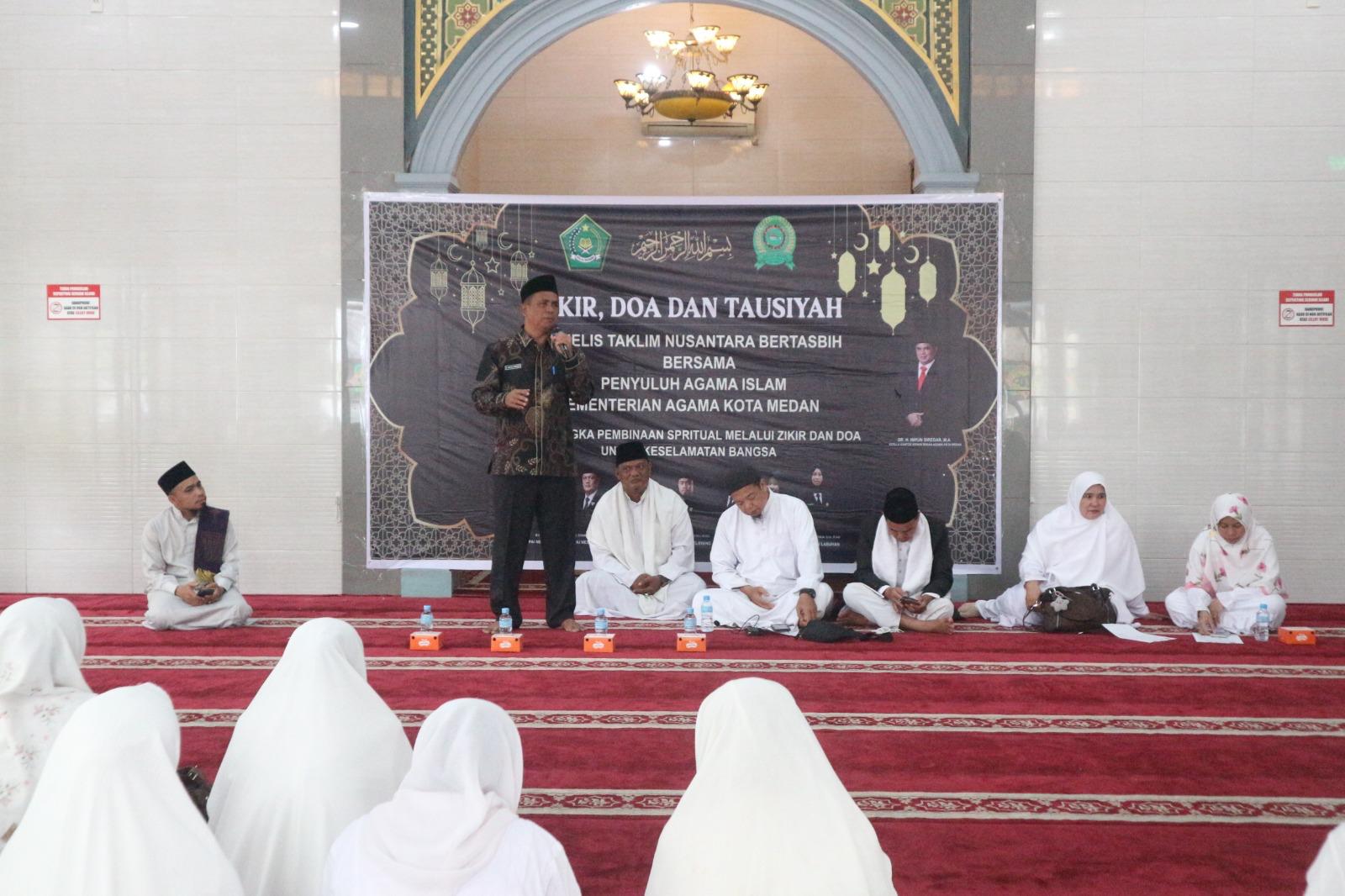 Dalam arahannya, Kepala Kantor Kementerian Agama Kota Medan menegaskan bahwa pembinaan spiritual melalui zikir dan doa memiliki peran strategis dalam membangun ketenangan batin dan menjaga persatuan umat di tengah berbagai tantangan kehidupan.