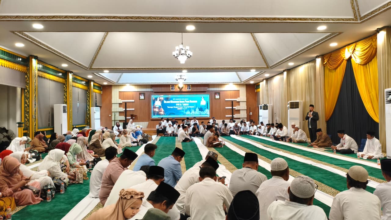 Medan (Humas)– Kepala Kantor Urusan Agama (KUA) Kecamatan Medan Perjuangan, H. Ramlan, S.Ag., M.A., menyampaikan tausiah Ramadan pada pelaksanaan salat Isya dan tarawih berjemaah di Rumah Dinas Wali Kota Medan, Sabtu (28/2/2026).