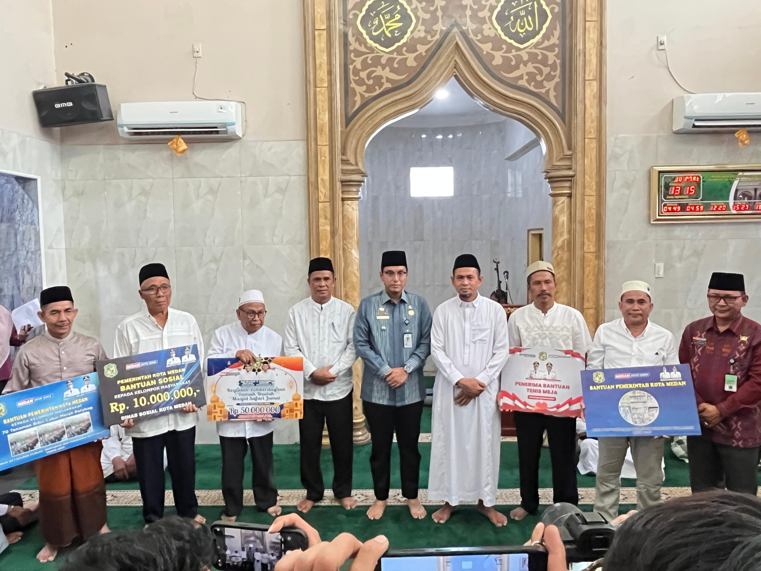 Pada kesempatan tersebut, Pemko Medan menyerahkan bantuan berupa dana rehabilitasi masjid sebesar Rp50 juta, bantuan sosial Rp10 juta, 70 polybag bibit cabai, satu set tenis meja, serta rak dan buku bacaan untuk Masjid Nurul Hidayah.