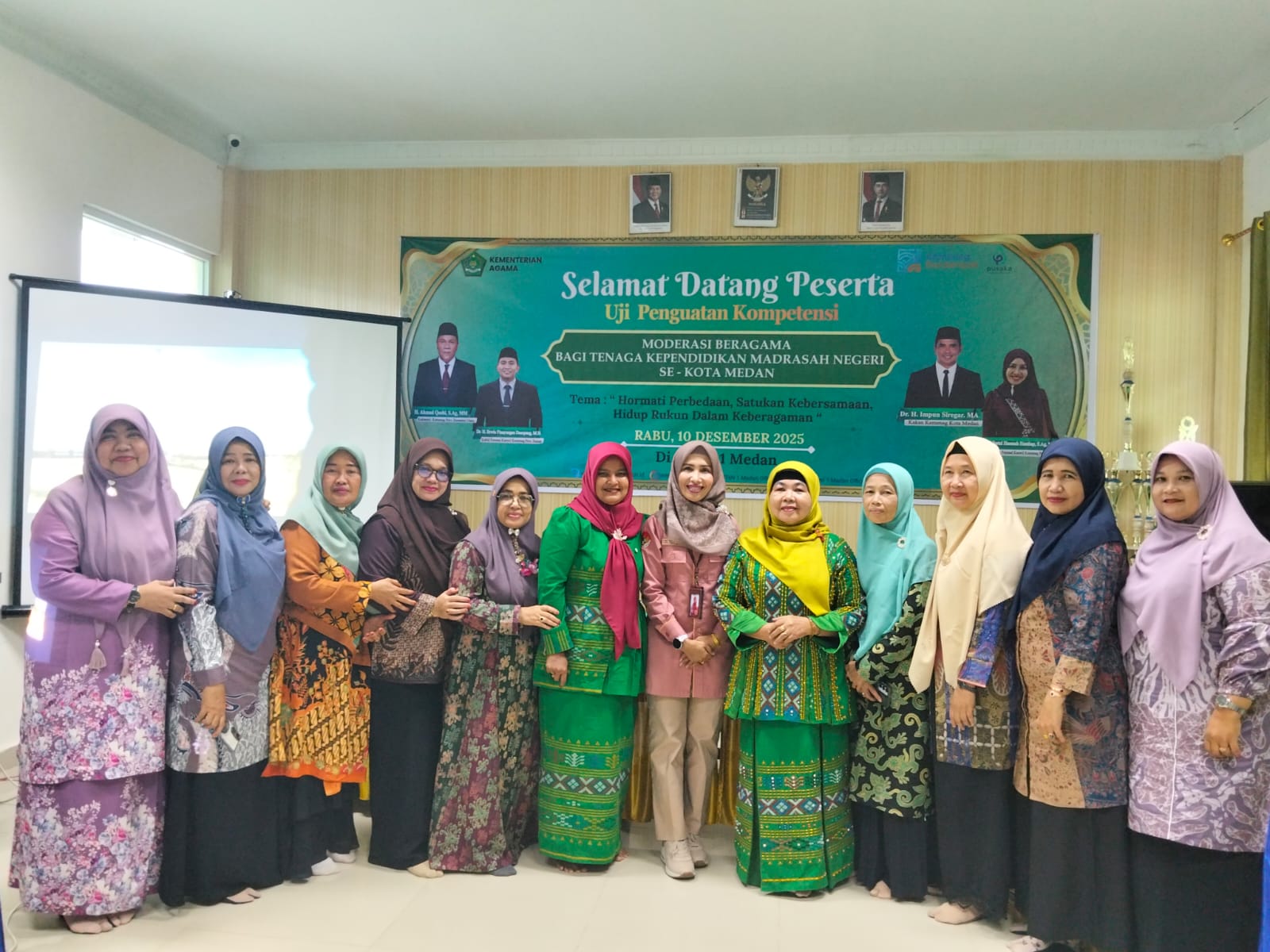 Kegiatan uji kompetensi ini turut mendapat perhatian khusus dari Kepala Kantor Kementerian Agama Kota Medan, Dr. H. Impun Siregar, MA, yang hadir memberikan arahan. Dalam sambutannya, beliau menekankan bahwa moderasi beragama merupakan nilai penting yang harus dipraktikkan dalam kehidupan sehari-hari, terutama bagi tenaga kependidikan yang berperan sebagai teladan di lingkungan madrasah.