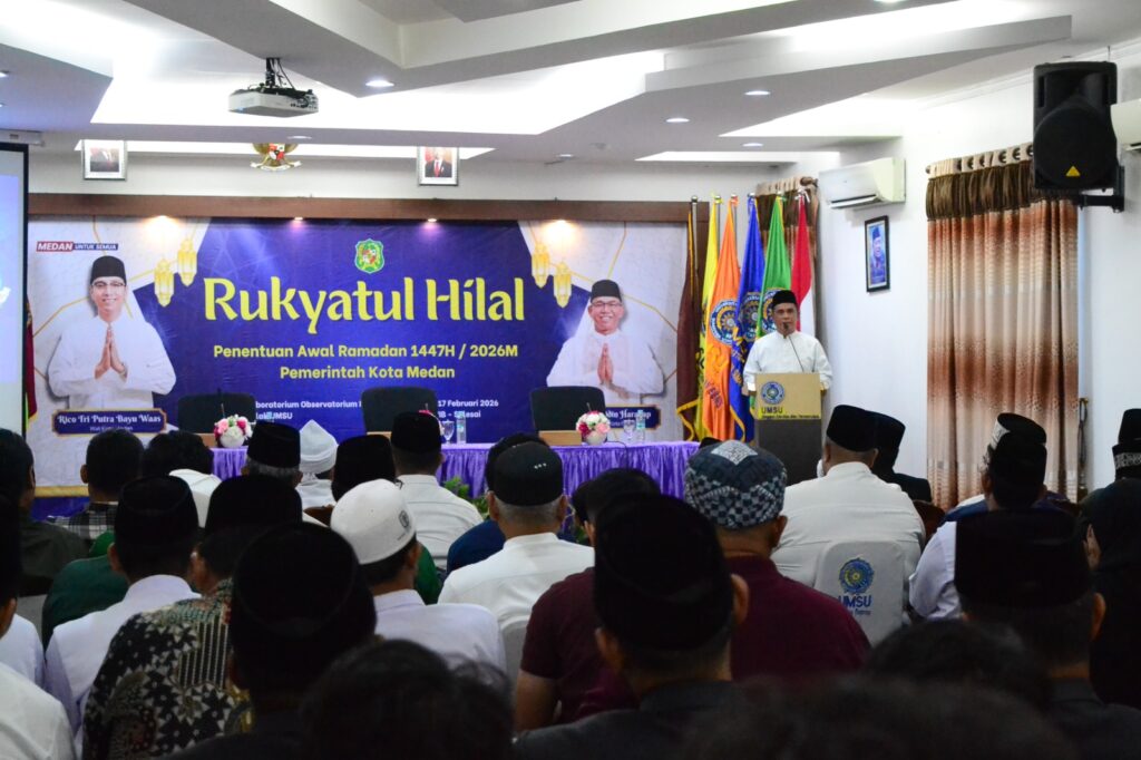 Medan (Humas) – Kantor Kementerian Agama (Kemenag) Kota Medan bersama Pemerintah Kota Medan melaksanakan kegiatan Rukyatul Hilal dalam rangka penetapan awal Ramadan 1447 Hijriah di Observatorium Ilmu Falak (OIF) Universitas Muhammadiyah Sumatera Utara (UMSU), Selasa (17/02/2026). Kegiatan ini merupakan bagian dari upaya memastikan penentuan awal bulan suci Ramadan secara akurat dan sesuai dengan ketentuan syariat dan pemerintah.