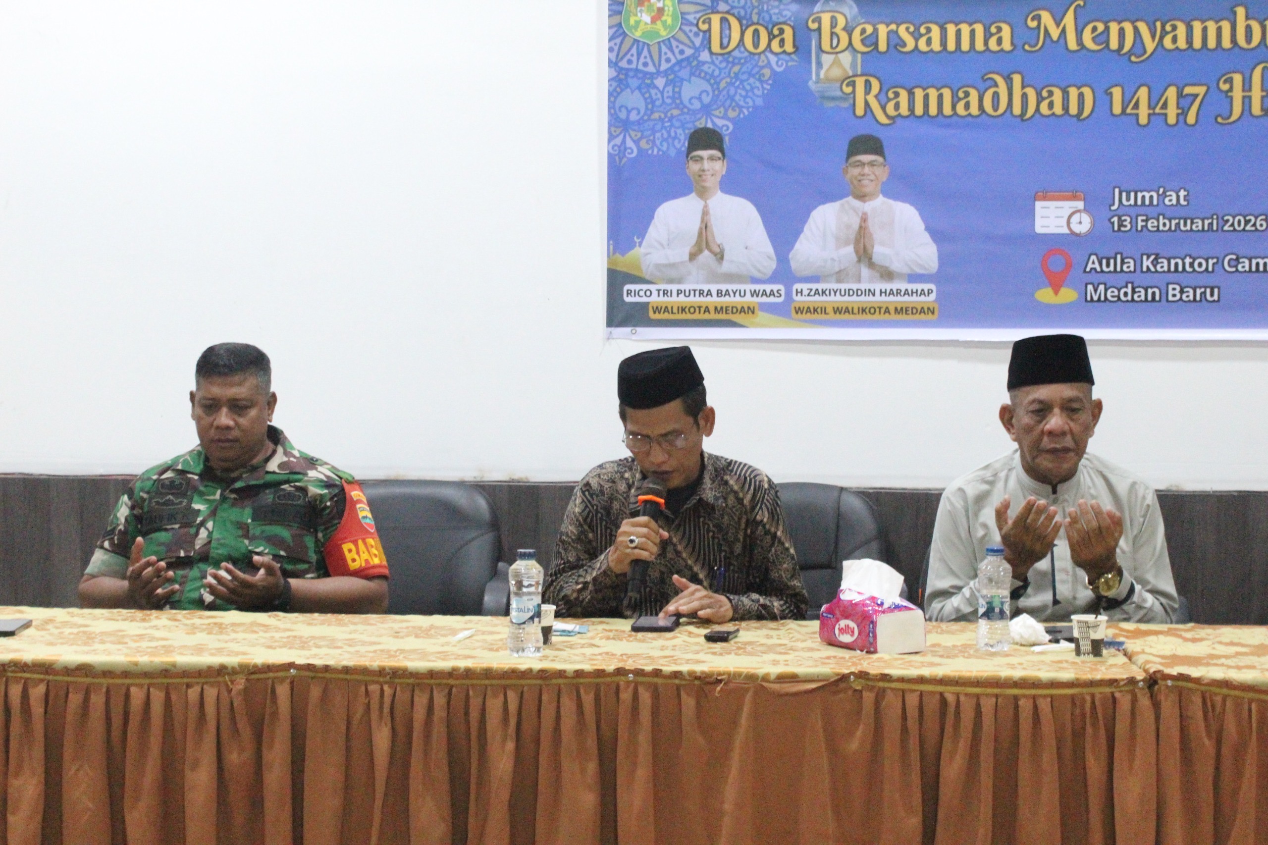 Medan β Dalam rangka menyambut datangnya Bulan Suci Ramadhan 1447 Hijriah, Kepala KUA Medan Baru, Julhaidir Sembiring, M.Ag., memimpin doa bersama yang dilaksanakan di Aula Kecamatan Medan Baru, Jumat (13/2/2026).