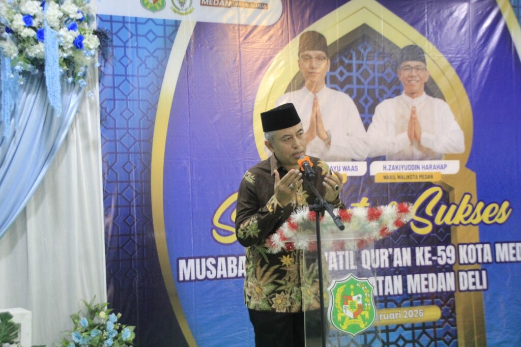 Medan (Humas) — Kepala Kantor Urusan Agama (KUA) Kecamatan Medan Deli, H. Aslen, S.Th.I., M.A., memimpin pembacaan doa pada acara pembukaan Musabaqah Tilawatil Qur’an (MTQ) ke-59 Tingkat Kota Medan Tahun 2026 untuk Kecamatan Medan Deli. Kegiatan tersebut berlangsung di Aula Kantor Lurah Tanjung Mulia Hilir, Jalan Kawat VII No. 1 Lingkungan VII, Kecamatan Medan Deli, Rabu (4/2/2026).