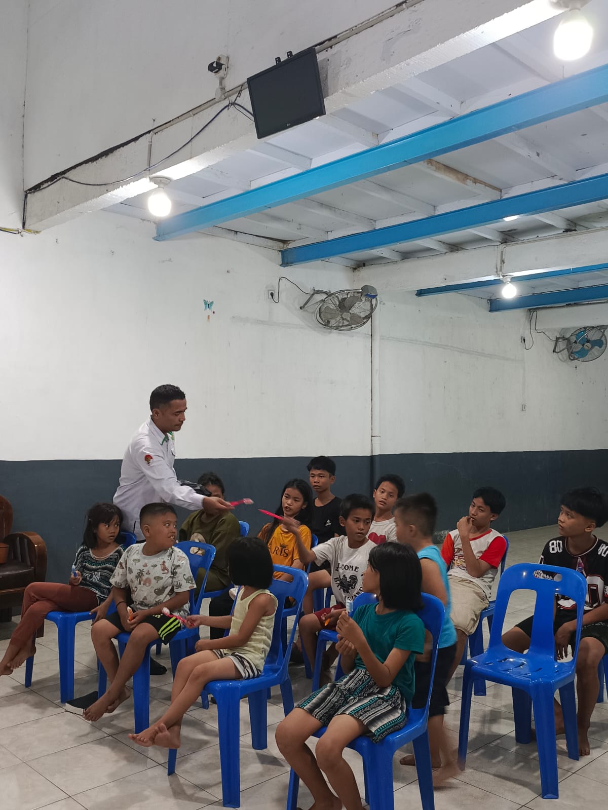 Sebagai bentuk kepedulian nyata, ia turut membagikan alat sikat gigi baru kepada seluruh anak di Panti Asuhan Gesma Kairos. Aksi sederhana ini disambut dengan keceriaan dan rasa syukur dari para penghuni panti.