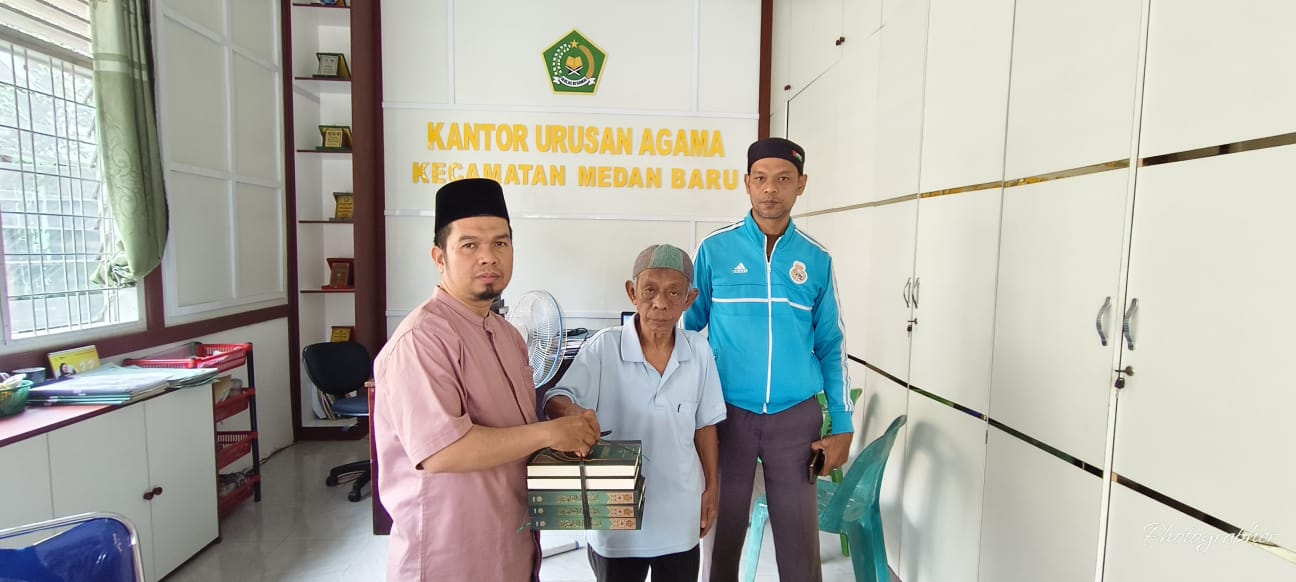 Medan (Humas) — Penyuluh Agama Islam Kantor Urusan Agama (KUA) Kecamatan Medan Baru, Rahmat Siregar, S.Pd.I., menyerahkan bantuan Al-Qur’an kepada pengurus Musholla Silaturahim pada Kamis, 20 Februari 2026. Bantuan tersebut diberikan sebagai bentuk kepedulian terhadap peningkatan syiar Islam dan literasi Al-Qur’an di tengah masyarakat.