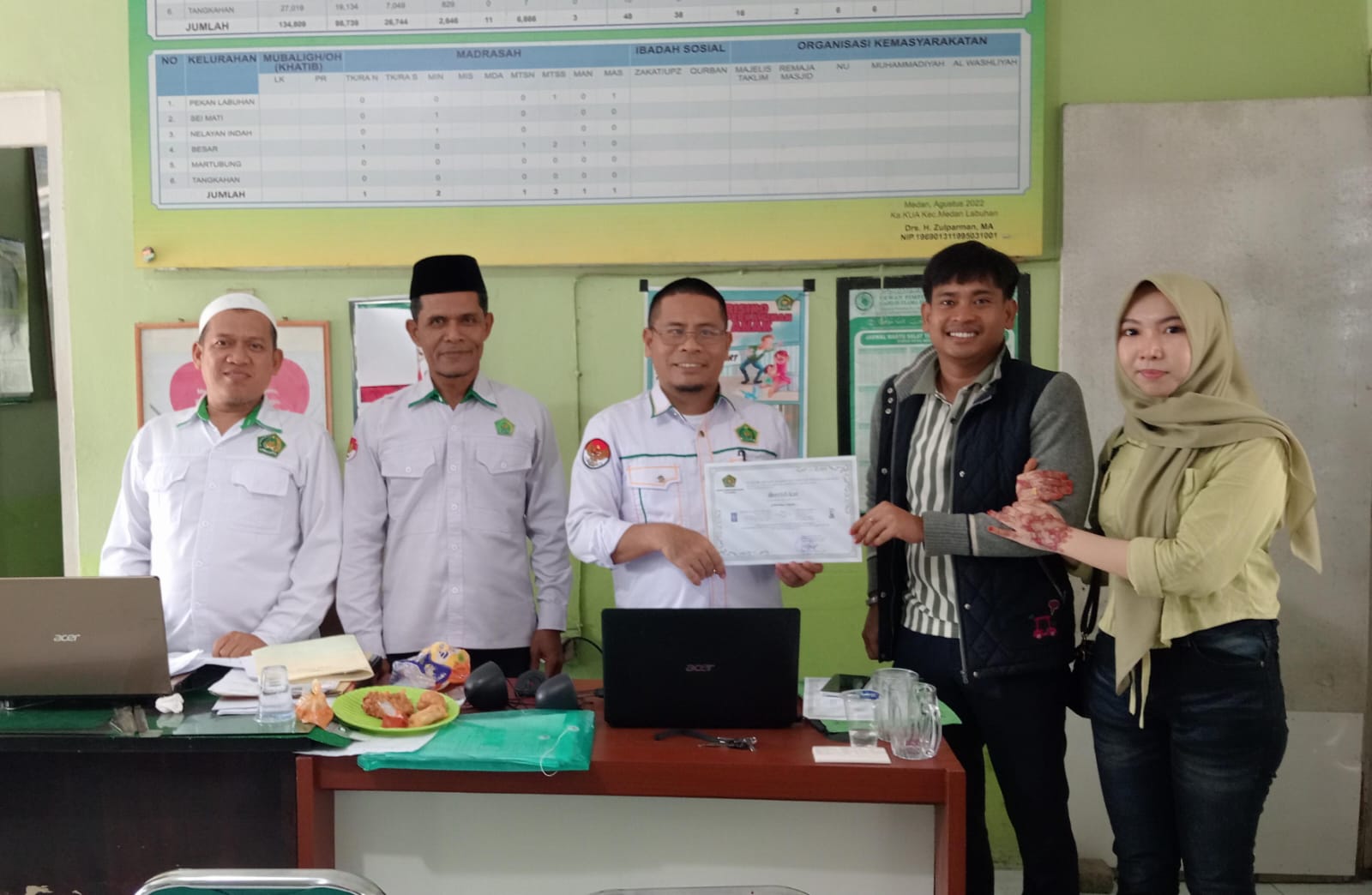 Medan (Humas) – Penata Layanan Operasional (PLO) Usman Abdul Somad, S.Pd bersama Penghulu Kantor Urusan Agama (KUA) Kecamatan Medan Labuhan, Mun’im Drajat, S.Ag dan Ali Bata Ritonga, Lc., M.Ag, melaksanakan kolaborasi dalam kegiatan Bimbingan Perkawinan Pra Nikah bagi calon pengantin Efron Syahputra dan Witri Andika. Kegiatan tersebut berlangsung pada Senin (9/2/2026) di KUA Kecamatan Medan Labuhan.