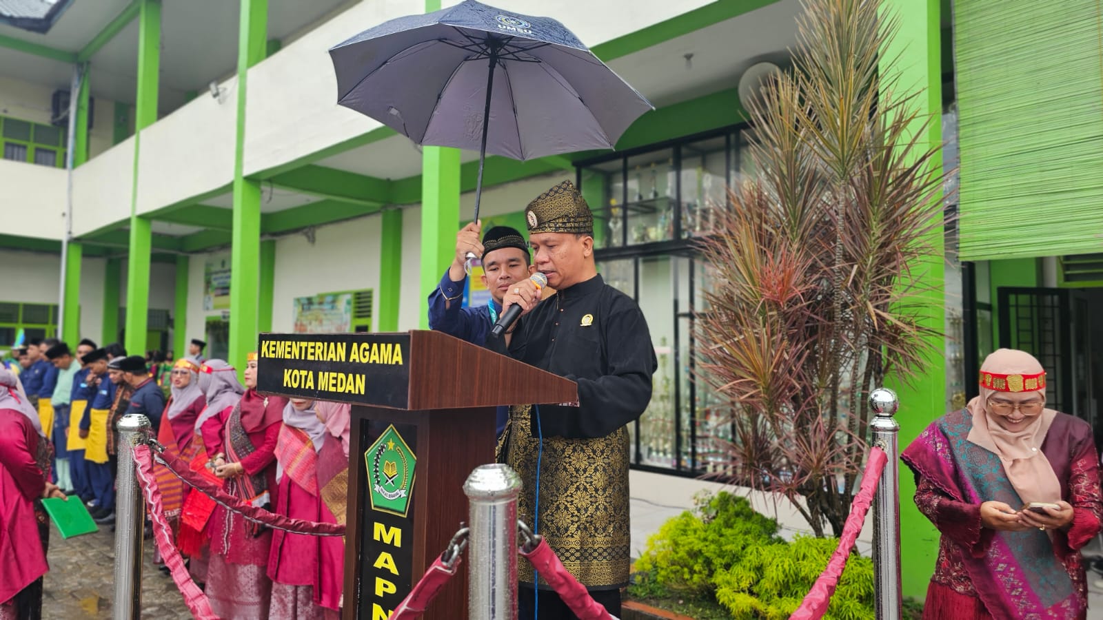 Pada kesempatan itu, Kepala MAPN 4 Medan, Dr. Syarifuddin, S.Pd.I, MA, bertindak sebagai pembina upacara. Dalam amanatnya, beliau menegaskan bahwa guru adalah pilar penting peradaban yang berperan sebagai motor penggerak kebaikan di tengah derasnya arus perubahan zaman.