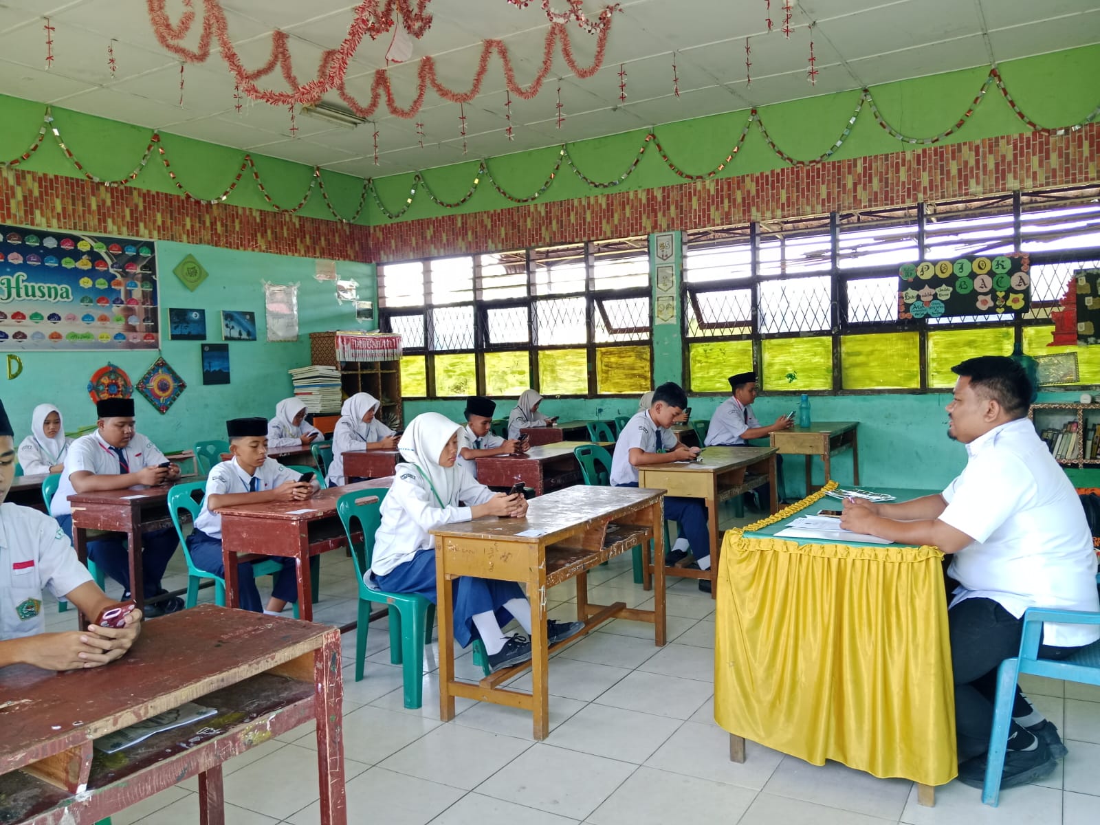 Selain itu, tata tertib ujian bagi peserta dan pengawas juga disampaikan oleh Sartika, S.Pd. “Peserta ujian yang terlambat dapat mengikuti ujian setelah mendapat izin dari panitia dan tidak mendapatkan tambahan waktu. Selama ujian berlangsung, peserta tidak diperkenankan meninggalkan ruangan tanpa izin pengawas. Untuk pengawas, agar selalu memperhatikan peserta ujian dan wajib menjaga ketertiban di dalam ruang ujian,” jelasnya.