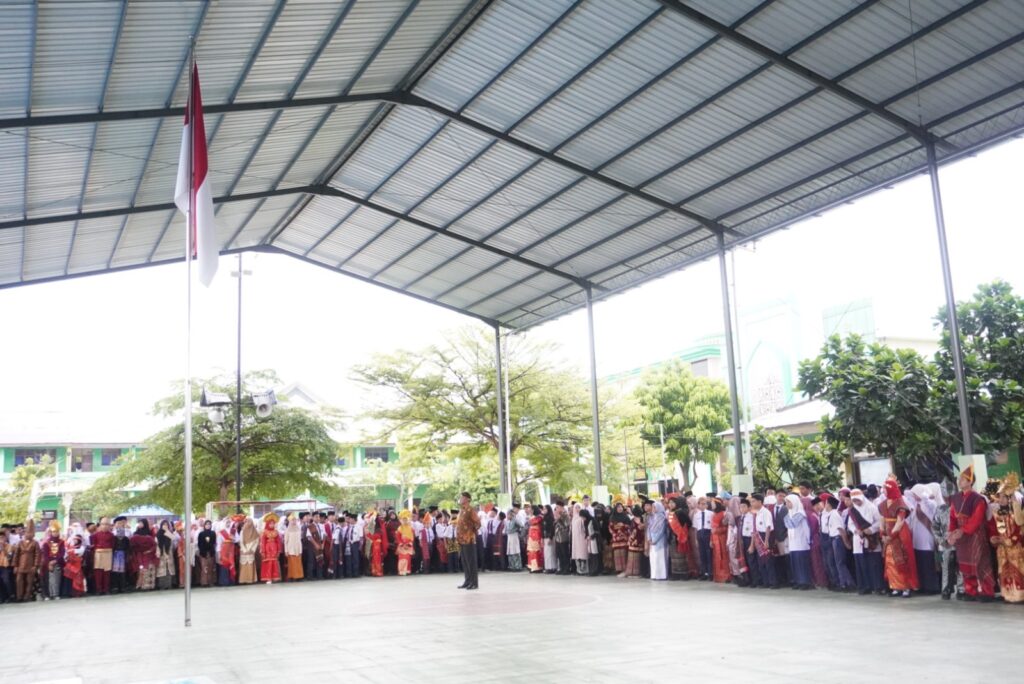 Upacara dipimpin oleh Kepala MTsN 2 Medan, Dra. Pesta Berampu, MA yang dalam amanatnya menyampaikan apresiasi atas dedikasi para guru serta mengajak seluruh peserta didik untuk terus menjaga budaya serta menguatkan karakter positif.