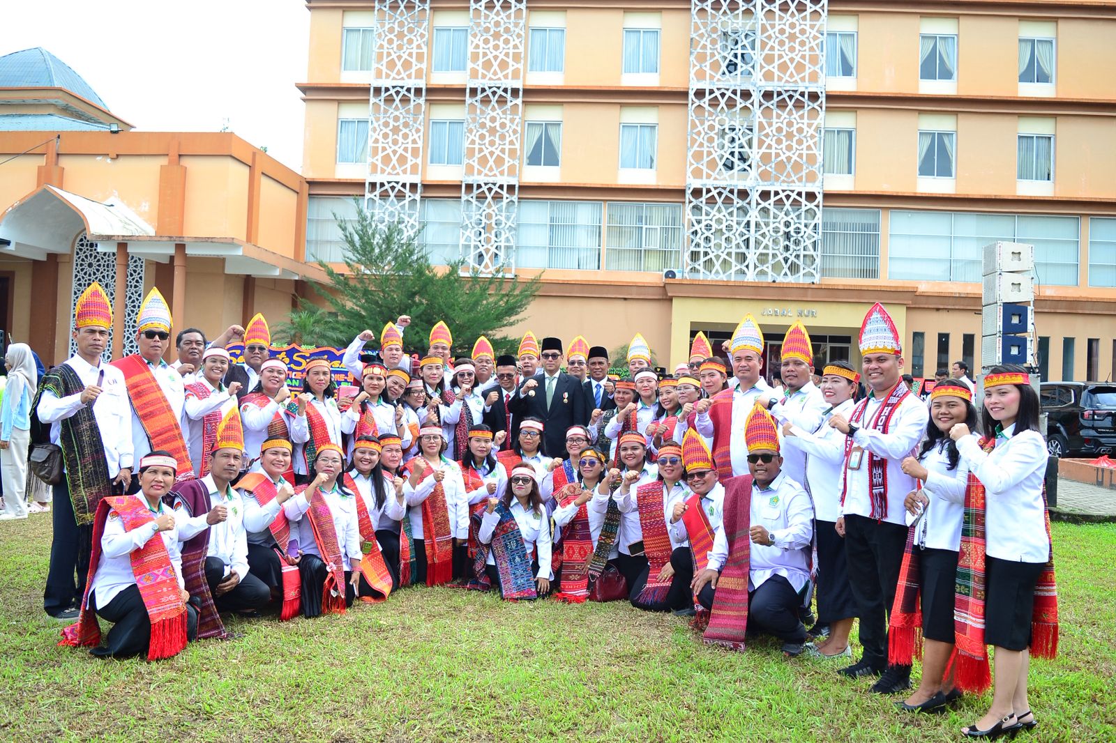 Paduan Suara Seksi Bimas Kristen Kemenag Medan berperan aktif dalam mendukung jalannya upacara melalui penampilan vokal yang mengiringi rangkaian kegiatan, sehingga menambah kekhusyukan dan semarak peringatan Hari Amal Bakti ke-80 tersebut.