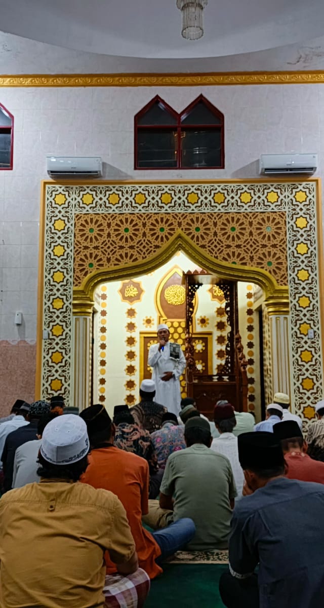 Medan (Humas) — Penyuluh Agama Islam (PAI) Kecamatan Medan Amplas, Harun Ar-Rasyid, menyampaikan tausiyah pada malam kesembilan bulan Ramadan di Masjid Al Muslimin, Jalan Pengilar, Kelurahan Amplas, Kota Medan, Kamis (26/02/2026).
