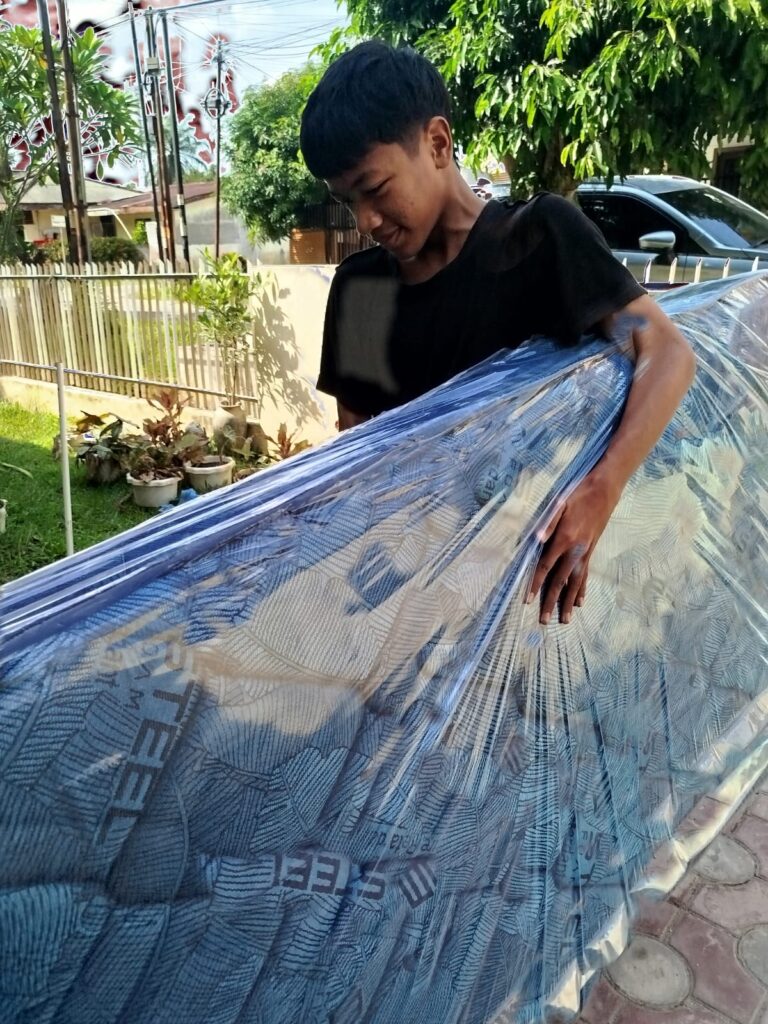 “Saat melihat kondisi rumah korban, kasurnya benar-benar rusak dan tidak bisa digunakan lagi. Karena itu, kami membawa kasur baru agar mereka bisa kembali tidur dengan layak malam ini. Semoga bantuan ini dapat mengurangi beban yang mereka rasakan,” ujar Naila Amna.