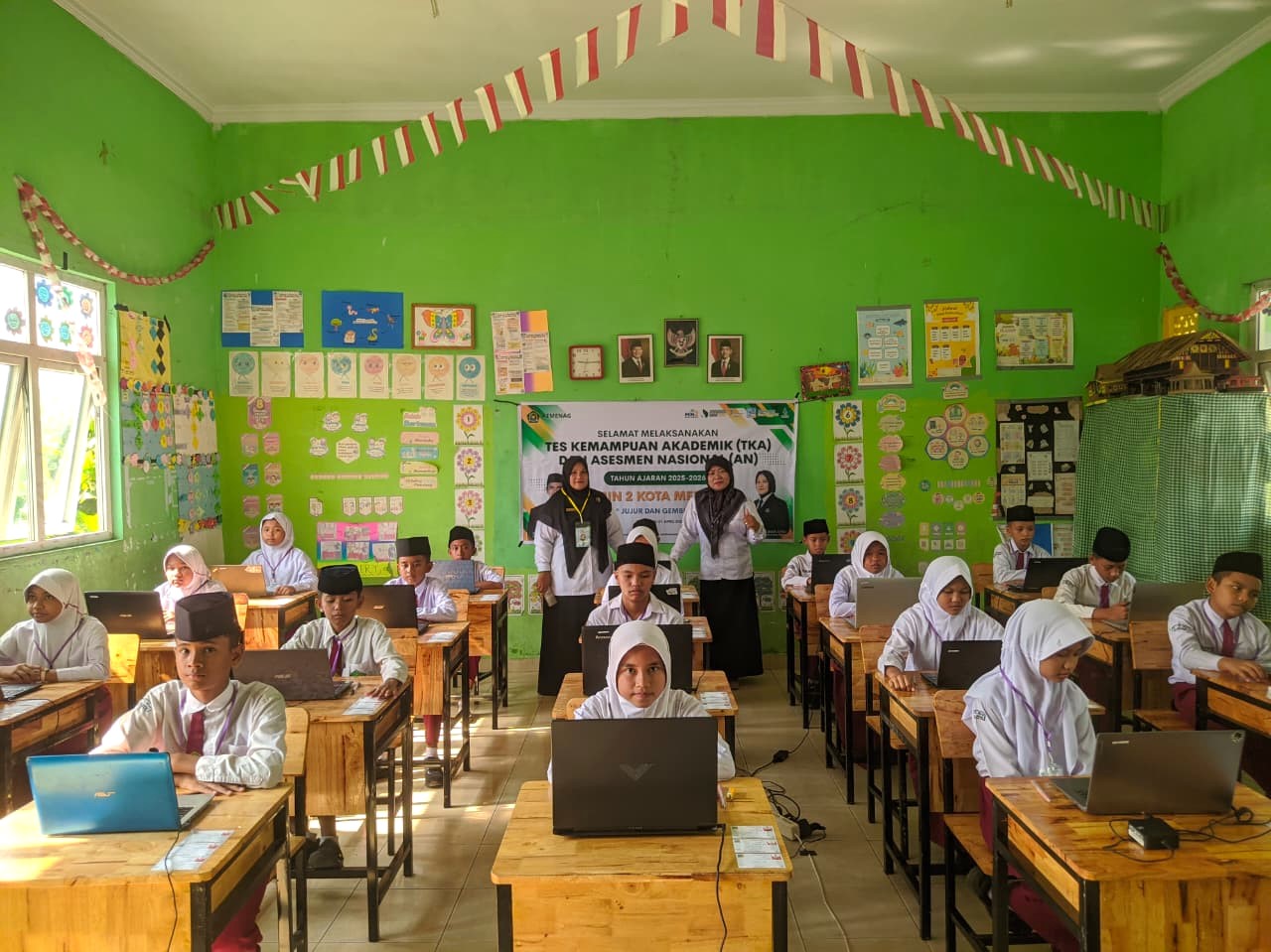 Setelah proses monitoring selesai, para murid mulai memasuki ruang ujian dengan tertib dan penuh kesiapan. Mereka tampak antusias dan siap mengikuti ujian sebagai bagian dari evaluasi capaian pembelajaran yang telah mereka tempuh.