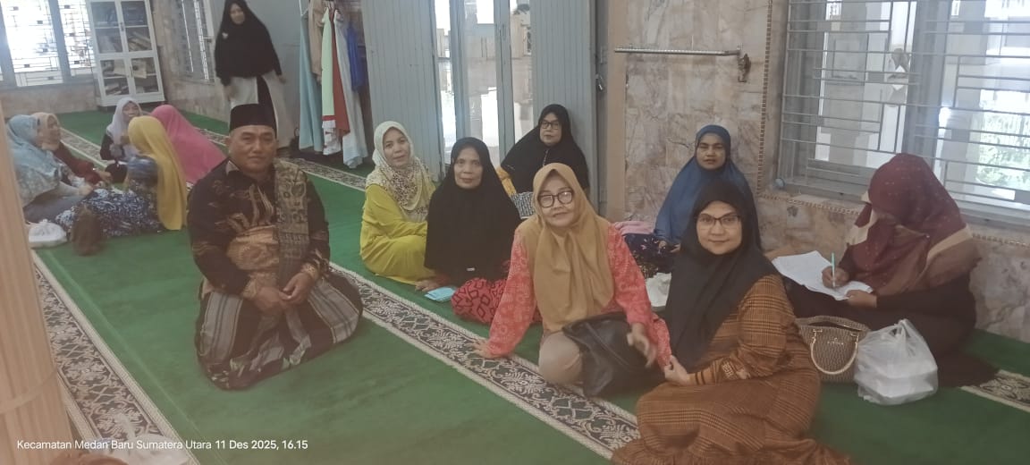 Medan (Humas) — Penyuluh Agama Islam KUA Kecamatan Medan Baru, Syahmuda Nasution, S.Ag., kembali melaksanakan kegiatan bimbingan dan penyuluhan keagamaan bersama Majelis Taklim Nurul Iman Kelurahan Babura. Kegiatan yang berlangsung dalam suasana hangat dan penuh perhatian tersebut mengangkat tema yang relevan dengan kondisi masyarakat saat ini, yakni “Sikap Orang Beriman Saat Menghadapi Bencana.”