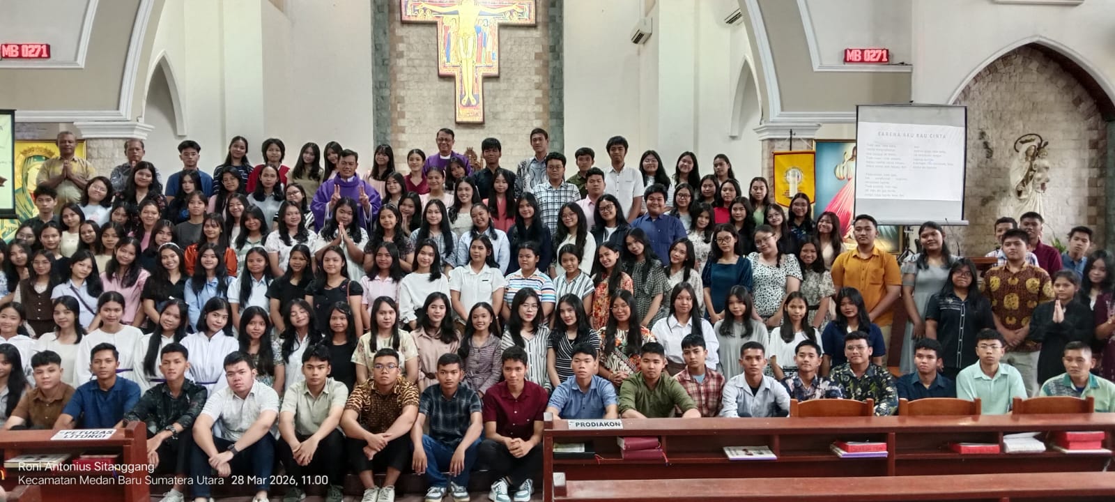 Medan (Humas) Penyuluh Agama Katolik Kementerian Agama Kota Medan yang diwakili oleh Roni Antonius Sitanggang, S.Fil., dan Marulam Nainggolan, S.S., menghadiri kegiatan Misa Pemberangkatan Siswa Kelas XII tingkat SMA yang dilaksanakan pada Sabtu (28/03/2026) pukul 09.00 hingga 13.00 WIB di Gereja Paroki St. Antonius dari Padua Hayam Wuruk Medan, beralamat di Jl. Hayam Wuruk No. 1, Kelurahan Petisah Hulu, Kecamatan Medan Baru, Kota Medan, Sumatera Utara.