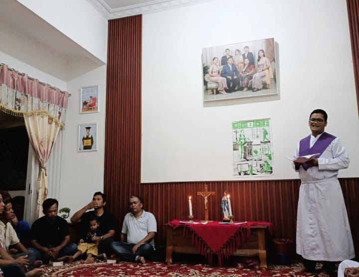 Medan (Humas) Penyuluh Agama Katolik Kementerian Agama Kota Medan menggelar kegiatan pendalaman Poster Aksi Puasa Pembangunan (APP) Pertemuan II bersama umat di kediaman keluarga M. Naibaho/br. Purba yang beralamat di Jalan Tapian Nauli Pasar IV, Kelurahan Sunggal, Kecamatan Medan Sunggal, Rabu (04/03/2026).