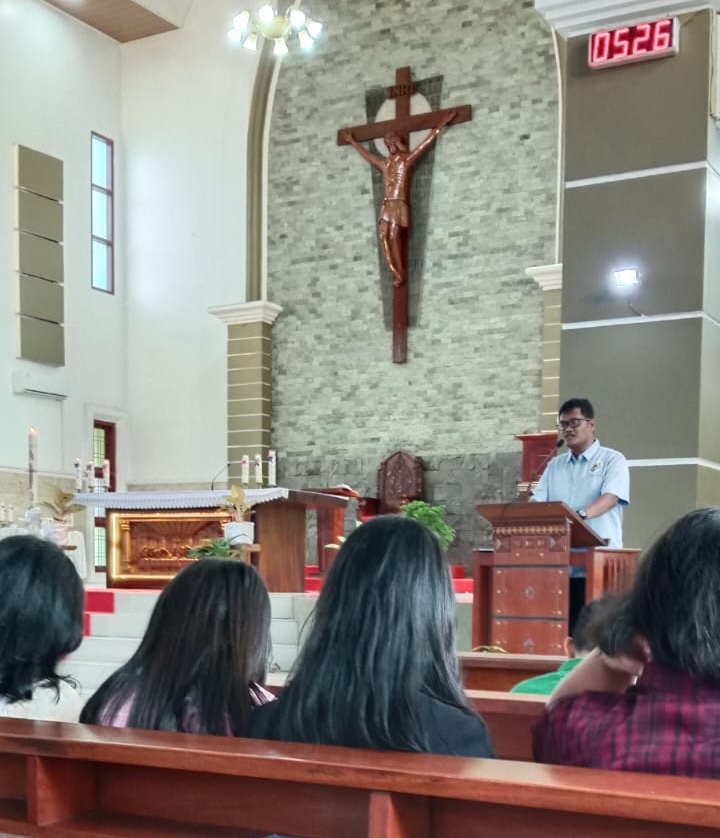 Medan (Humas) Penyuluh Agama Katolik Kementerian Agama Kota Medan, Roni Antonius Sitanggang, S.Fil., memberikan katekese lima menit kepada umat di Stasi Santo Fransiskus Xaverius pada Minggu (19/04/2026). Kegiatan ini berlangsung di gereja yang beralamat di Jl. Abadi No.54, Tj. Rejo, Kecamatan Medan Sunggal, Kota Medan, Sumatera Utara, dan diikuti dengan antusias oleh umat yang hadir.