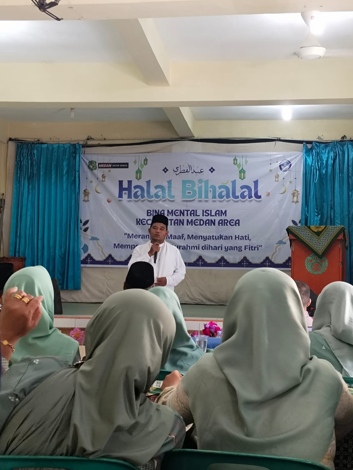 Medan (Humas) — Penyuluh Agama Islam Kantor Urusan Agama (KUA) Kecamatan Medan Denai, Khoiruz Zaman, S.Hi., S.Pd.I., menghadiri sekaligus menyampaikan tausiyah dalam kegiatan Pengajian dan Halalbihalal yang diselenggarakan oleh Kelompok Kerja Kepala Sekolah (K3S) Kecamatan Medan Area, Sabtu (18/4/2026).