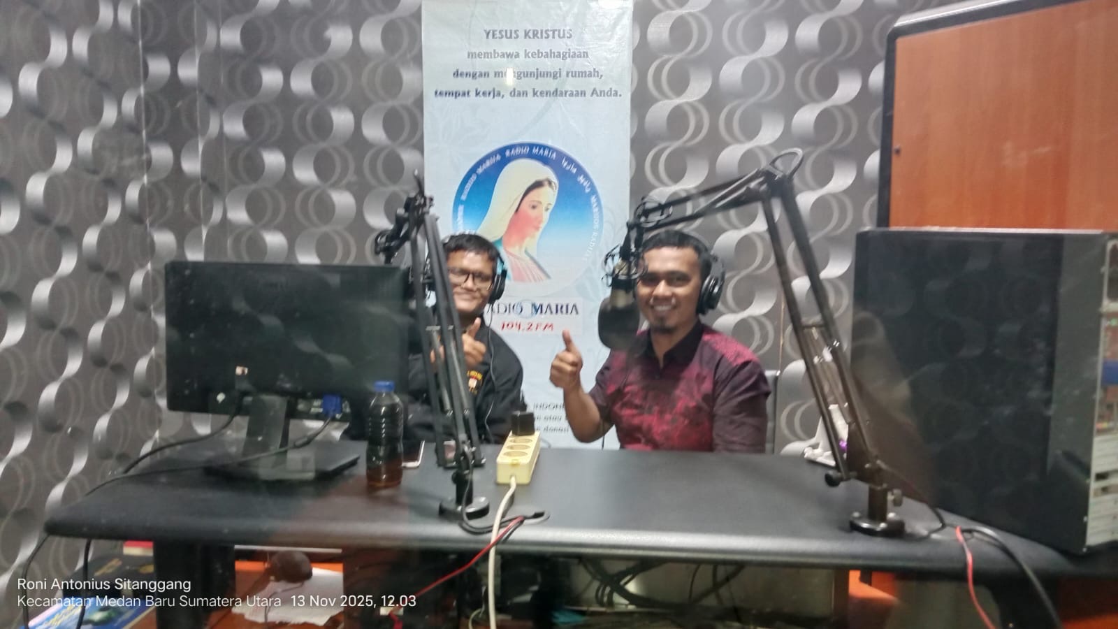 Medan (Humas) Penyuluh Agama Katolik Kementerian Agama Kota Medan melaksanakan sosialisasi hasil Sidang Agung Gereja Katolik Indonesia (SAGKI) V melalui siaran Radio Maria Indonesia 104.2 FM. Kegiatan ini berlangsung pada Kamis (13/11/2025). Siaran ini bersumber dari dokumen hasil SAGKI V yang baru dirilis sebagai rekomendasi pastoral Gereja kepada umat. Dua penyuluh, Roni Antonius Sitanggang, S.Fil dan Ricardo Simamora, S.Ag, hadir presenter radio dalam sosialisasi tersebut.