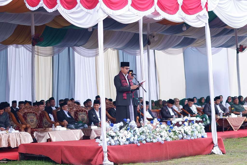 Wali Kota Medan, Rico Tri Putra Bayu Waas, bertindak sebagai Pembina Upacara, sekaligus membacakan Amanat Menteri Agama Republik Indonesia.