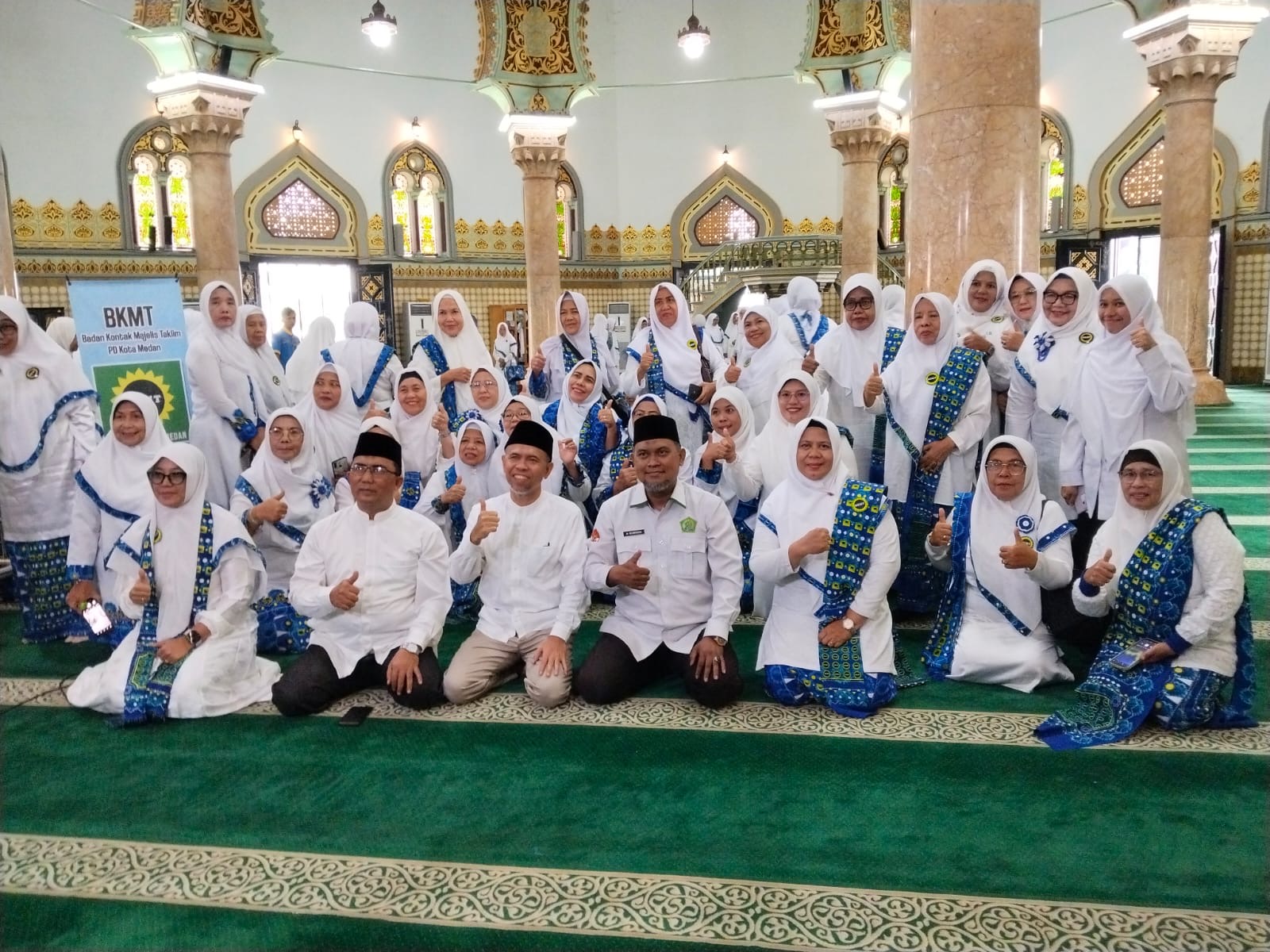 Medan (Humas) — Suasana sejuk dan penuh kekhusyukan menyelimuti Masjid Raya Al Mashun Medan pada Selasa (16/12). Rombongan ibu-ibu Majelis Taklim utusan dari seluruh kecamatan se-Kota Medan tampak hadir dengan busana syar’i untuk mengikuti Pengajian Akbar Badan Kontak Majelis Taklim (BKMT) se-Kota Medan. Kegiatan pengajian rutin tersebut kali ini dituanrumahi oleh Majelis Taklim Kecamatan Medan Belawan dan Medan Baru.