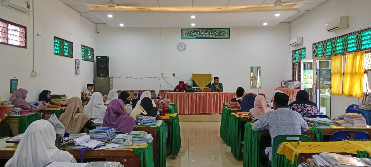 Medan (Humas) Madrasah Tsanawiyah Negeri (MTsN) 1 Medan menggelar rapat dinas darurat pada Senin pagi di ruang guru. Rapat yang dimulai pukul 08.00 WIB ini membahas penerapan pembelajaran daring selama dua hari, Senin hingga Selasa (1-2 September 2025), sebagai langkah antisipasi terkait aksi demonstrasi yang sedang berlangsung di beberapa wilayah.
