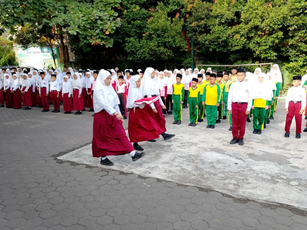 Medan (Humas) – Dalam rangka memperingati Hari Sumpah Pemuda ke-97, Madrasah Ibtidaiyah Negeri (MIN) 1 Kota Medan melaksanakan upacara bendera dengan penuh khidmat pada Selasa (28/10/2025). Upacara yang dimulai pukul 07.15 WIB ini berlangsung dengan tertib dan lancar di halaman madrasah.