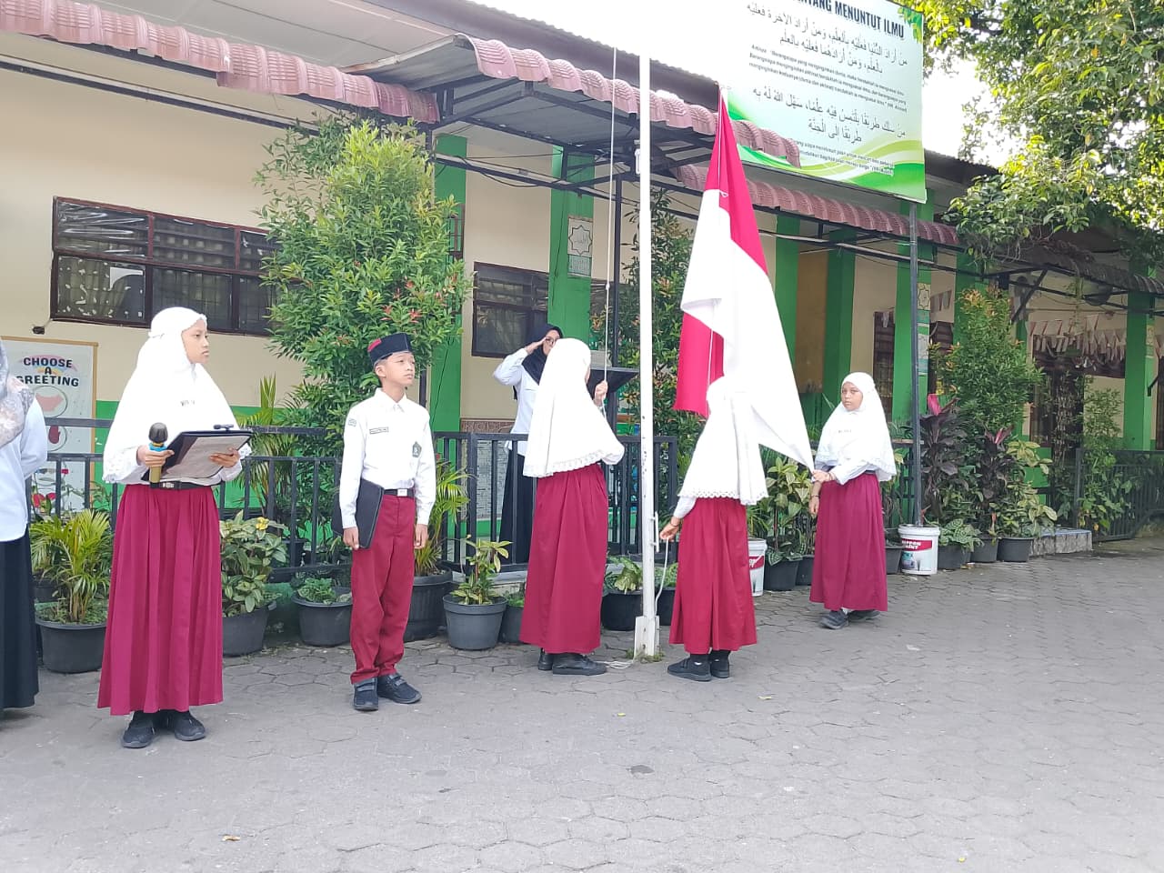 Kegiatan ditutup dengan menyanyikan lagu “Maju Pemuda Pemudi Indonesia” dan “Maju Tak Gentar” yang dinyanyikan dengan penuh semangat oleh seluruh peserta upacara. Suasana haru dan bangga terasa ketika lagu-lagu perjuangan tersebut menggema di lingkungan madrasah.