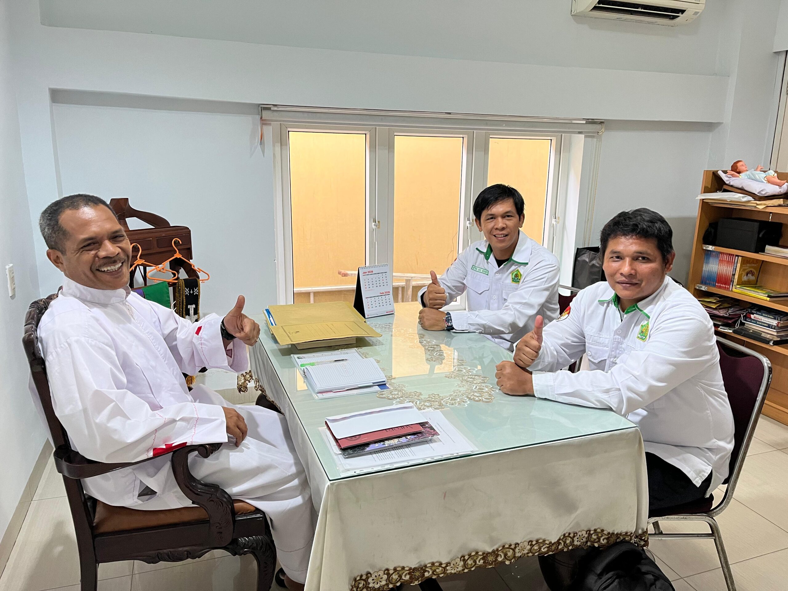 Medan (Humas) Pertemuan koordinasi antara Penyuluh Agama Katolik, Zetra Hail Saragih, S.Fil., dan Hekdi Jojada Sinaga, S.Fil., bersama Pastor Sesarius Petrus Mau, Pr., Pastor Paroki St. Perawan Maria Yang Dikandung Tanpa Noda Katedral Medan, berlangsung hangat dan penuh semangat pastoral pada Selasa, 03 Februari 2026, di Jl. Pemuda No. 1, Medan Maimun. Pertemuan yang dimulai pukul 09.00 WIB tersebut bertujuan memperkuat sinergi sekaligus menyelaraskan program kepenyuluhan di lingkungan Paroki Katedral Medan.