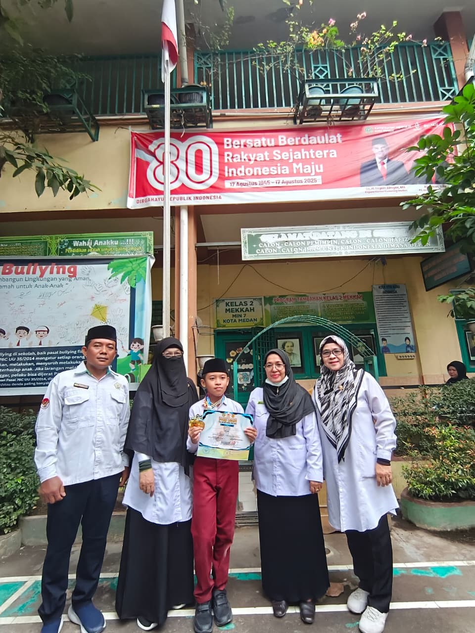 Safnita Fahmi Ahkam, S.Pd.I, Kepala MIN 7 Kota Medan, memberikan apresiasi setinggi-tingginya kepada Revandra. “Saya sangat mengapresiasi ananda yang telah mengharumkan nama madrasah. Teruslah meraih prestasi yang membawa nama baik madrasah bahkan sampai ke tingkat nasional. Saya juga mendukung seluruh siswa dan siswi MIN 7 Kota Medan yang ingin mengikuti kegiatan positif lainnya,” ujarnya penuh semangat.