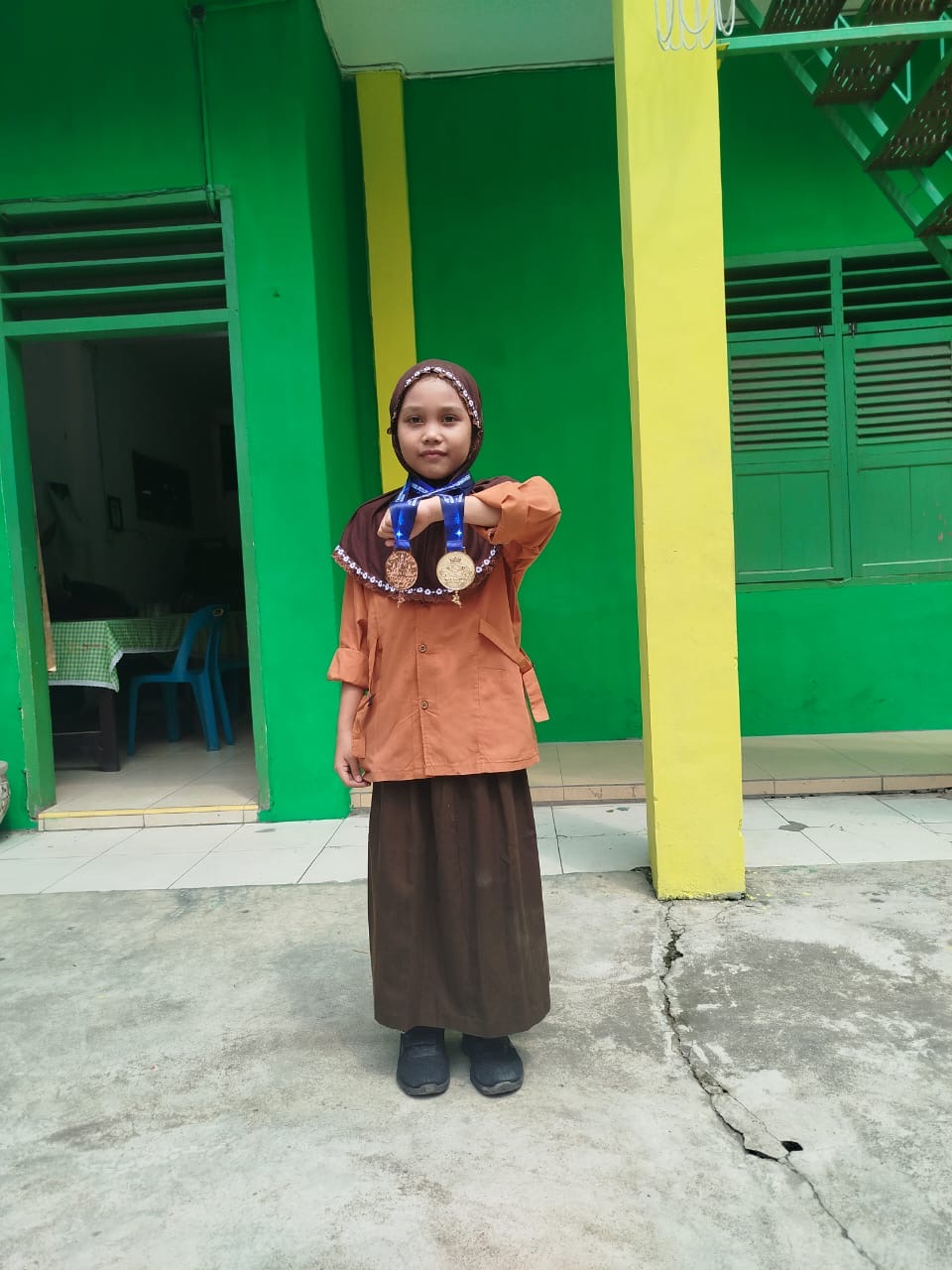 “Saya sangat senang bisa menang dan membawa pulang medali emas. Latihan setiap hari memang capek, tapi saya ingin membuat orang tua dan madrasah bangga. Saat tampil di Thailand, saya hanya fokus dan berdoa agar bisa melakukan yang terbaik,” ujar Arumi dengan penuh semangat.