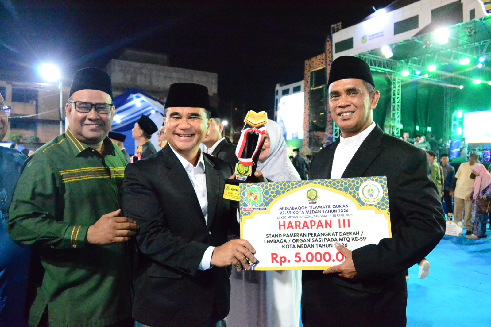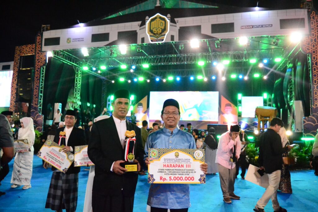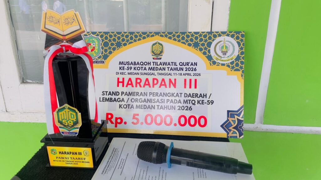 Medan (Humas) — Stand Kementerian Agama (Kemenag) Kota Medan berhasil meraih Juara Harapan III pada kategori Stand Pameran Perangkat Daerah/Lembaga/Organisasi dalam ajang Musabaqah Tilawatil Qur’an (MTQ) ke-59 Kota Medan Tahun 2026. Prestasi ini menjadi bukti nyata komitmen Kemenag dalam menghadirkan layanan keagamaan yang inovatif, informatif, dan berdampak langsung bagi masyarakat.
