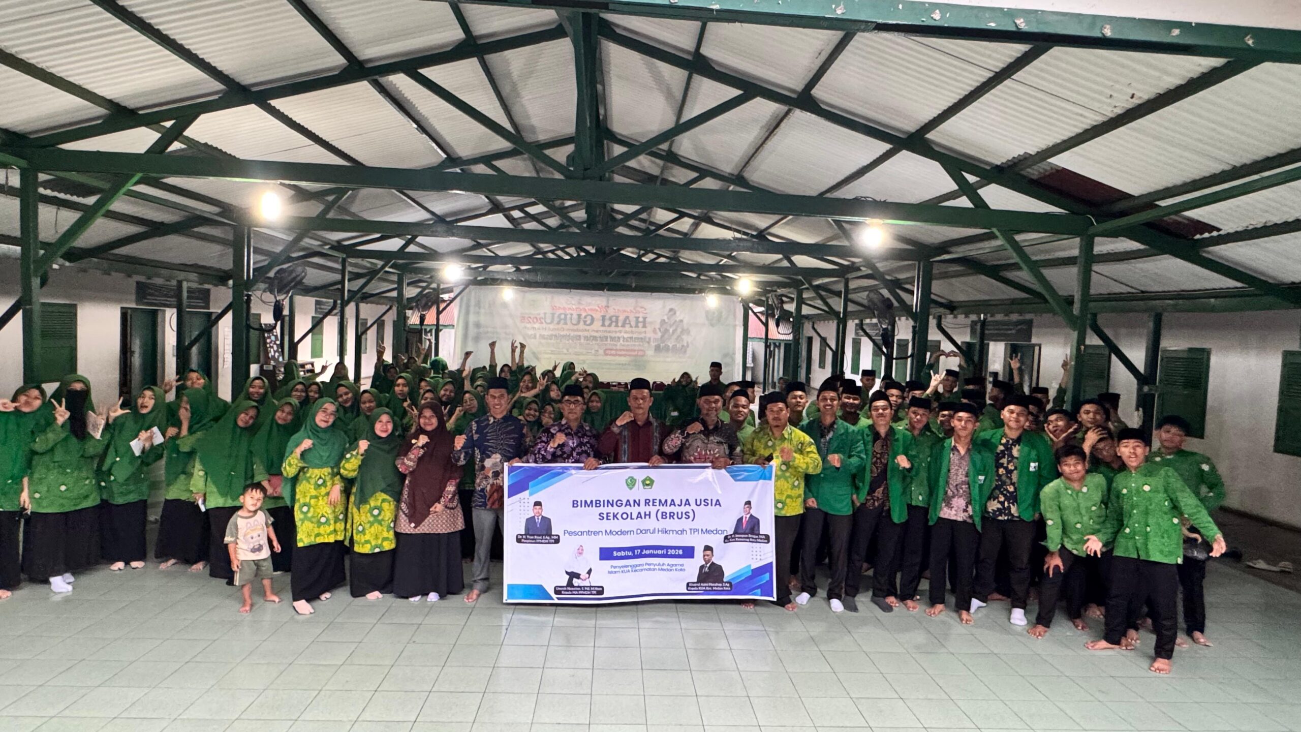 Medan (Humas) — Kantor Urusan Agama (KUA) Kecamatan Medan Kota bekerja sama dengan Penyuluh Agama Islam (PAI) menyelenggarakan kegiatan Bimbingan Remaja Usia Sekolah (BRUS) bagi santri dan santriwati. Kegiatan ini difokuskan pada penguatan nilai-nilai Akhlakul Karimah sebagai upaya membentengi generasi muda dari pengaruh negatif pergaulan bebas dan degradasi moral. BRUS dilaksanakan di Pondok Pesantren Modern Darul Hikmah TPI Medan, Sabtu (17/1/2026).