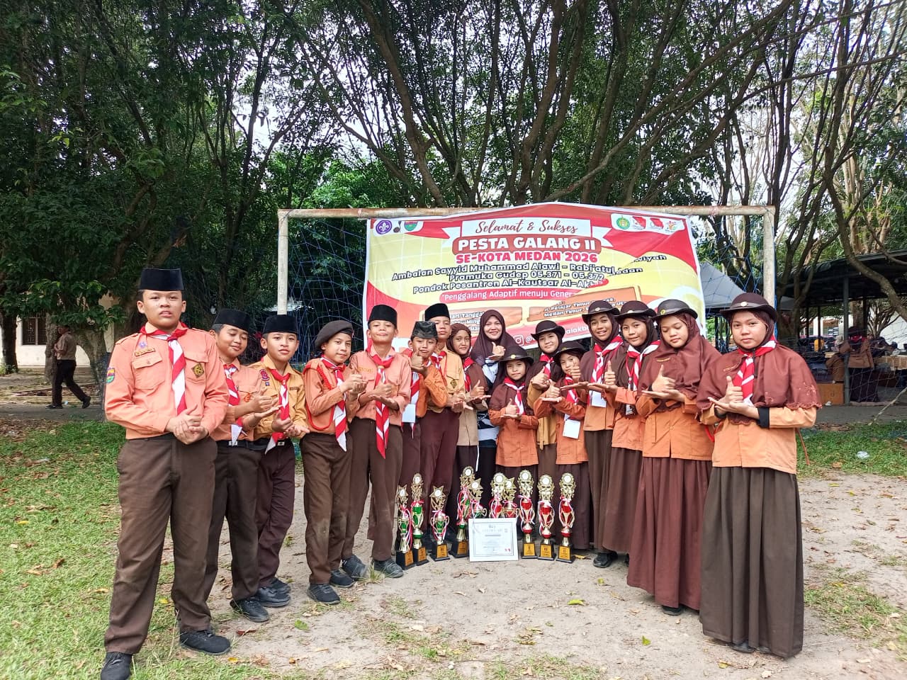 Medan (Humas) MIN 7 Kota Medan — Siswa-siswi Pramuka MIN 7 Kota Medan kembali menorehkan prestasi membanggakan dengan meraih sejumlah juara dalam ajang Pesta Galang II Se-Kota Medan yang diselenggarakan di Pondok Pesantren Al-Kautsar Al-Akbar, Jalan Pelajar Timur No. 246, Medan Timur, Sumatera Utara, pada Sabtu–Minggu, 7–8 Februari 2026. pada ajang Pesta Galang II tingkat Kota Medan. Kegiatan yang mempertemukan regu-regu Pramuka Penggalang dari berbagai sekolah ini berlangsung meriah dan penuh semangat kompetisi, serta menjadi wadah bagi para peserta untuk mengasah keterampilan, kedisiplinan, dan kerja sama tim.
