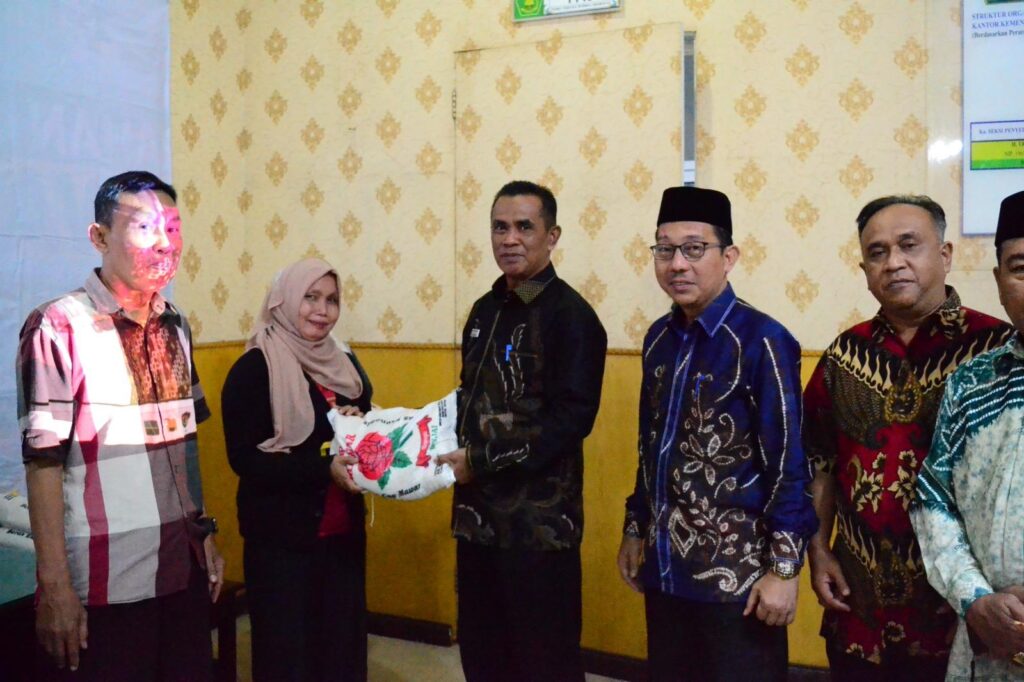 Medan (Humas) – Unit Pengelola Zakat (UPZ) Kantor Kementerian Agama Kota Medan menyalurkan bantuan zakat kepada para mustahik yang berasal dari zakat pegawai di lingkungan Kantor Kementerian Agama Kota Medan. Sebanyak 15 ton beras disiapkan untuk disalurkan melalui Kepala Kantor Urusan Agama (KUA), kepala-kepala madrasah, serta pegawai di lingkungan Kementerian Agama Kota Medan.