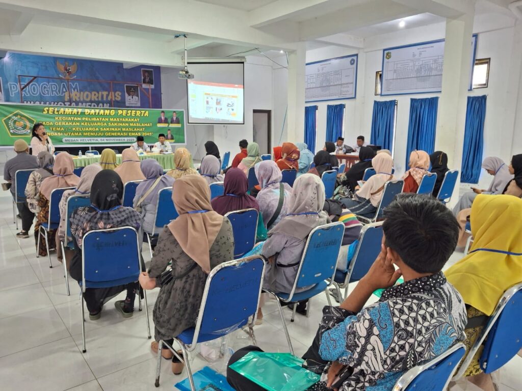Medan (Humas) – Kantor Urusan Agama (KUA) Kecamatan Medan Helvetia melaksanakan kegiatan pembinaan keluarga sebagai upaya mendukung terwujudnya Generasi Emas Indonesia 2045. Kegiatan ini dilaksanakan melalui pendekatan keluarga dan nilai-nilai keagamaan sebagai bagian dari tugas pokok dan fungsi KUA di lingkungan Kementerian Agama Kota Medan.